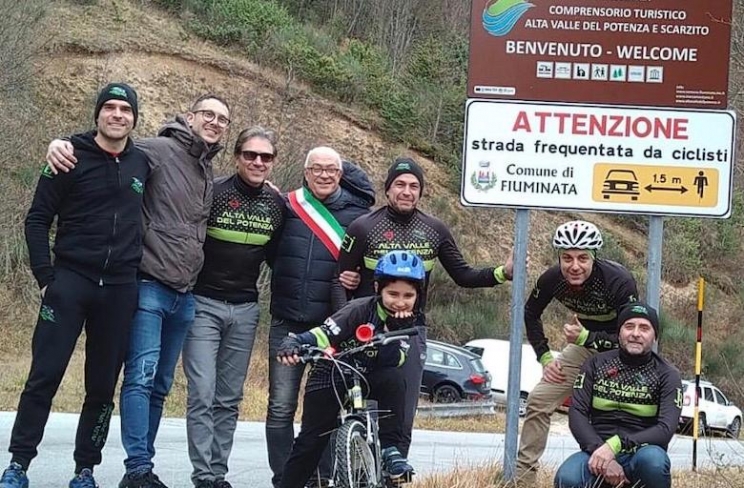 Fiuminata “amica dei ciclisti”. Inaugurati i cartelli che impongono di fare attenzione ai ciclisti lungo la strada, un’iniziativa che ha visto il coinvolgimento anche di Sefro e Pioraco. A proporre l'iniziativa al Comune di Fiuminata è stata Paola Gianotti, coach, scrittrice e detentrice di 3 Guinnes World Record per essere, fra le altre cose, la donna che ha circumnavigato il più velocemnte il glovo in bici.