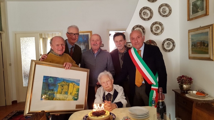 Subito dopo il sisma del 2016, la signora Maria si è infatti spostata a vivere nella casa umbra del figlio Ernesto, chirurgo in congedo. Una bella sorpresa ricevere la visita di una comunità che è sempre nel suo cuore e nei suoi pensieri, ancora di più dal giorno in cui, come tanti suoi concittadini, ha dovuto lasciare il paese a causa dell’inagibilità della sua abitazione. Una vita la sua interamente dedicata alla scuola e agli allievi considerati come altrettanti figli. Circondata da parenti e da tanti amici, carica dell’energia che l’ha sempre contraddistinta, la maestra Maria si è detta molto felice di festeggiare il traguardo del secolo in una maniera così speciale. Un quadro che rappresenta la chiesa della Madonna di Col de’ Venti, l’omaggio che a nome dell'intera comunità di Muccia, il sindaco Mario Baroni ha voluto consegnarle. Un segno di riconoscenza e di caloroso ringraziamento per la dedizione e l’attenzione manifestate nell’insegnamento e nella crescita di tante generazioni.