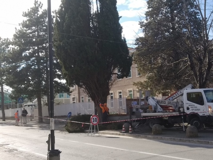 Martedì, 18 Febbraio 2020 09:53 | Letto 788 volte Clicca per ascolare il testo Chiesanuova, abbattuti i pini in via Sturzo danneggiati dal vento Le raffiche di vento che avevano colpito lentroterra maceratese avevano provocato a Chiesanuova la rottura di alcuni rami dei pini, piantati nel 1945, che si trovavano nei pressi della scuola primaria e dellinfanzia in via Don Luigi Sturzo. Oggi lufficio tecnico comunale ha deciso per labbattimento dei due alberi così da garantire la sicurezza degli alunni e del personale della scuola. Durante i lavori per il taglio dei pini nella zona interessata è stata precauzionalmente interrotta anche lerogazione dellenergia elettrica.