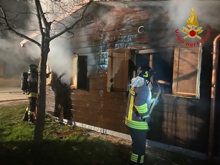 Le fiamme hanno interessato una casetta in legno adibita in passato a locale bar.