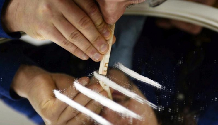 La droga era stata posizionata su un vassoio di metallo pronta per essere sniffata dai due.