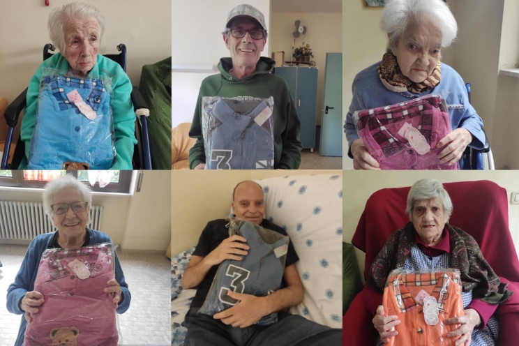 Pigiami per la casa di riposo di Pioraco. Dono della CRI