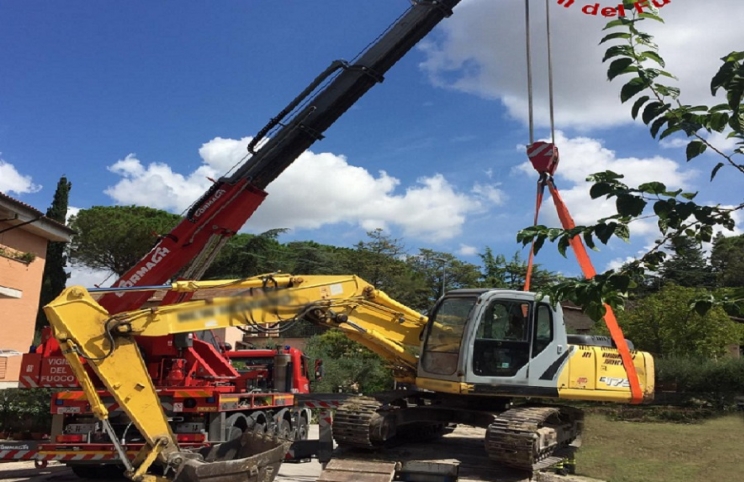 Escavatore rischia di ribaltarsi. Intervento Vigili del fuoco