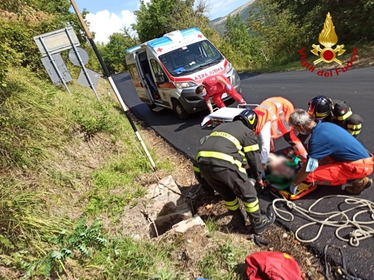 Sul posto i vigili del fuoco del distaccamento di Camerino che hanno estratto la donna, poi soccorsa dal personale del 118 e trasportata all'ospedale di Camerino, utilizzando le tecniche SAF, Speleo - Alpino - Fluviale.