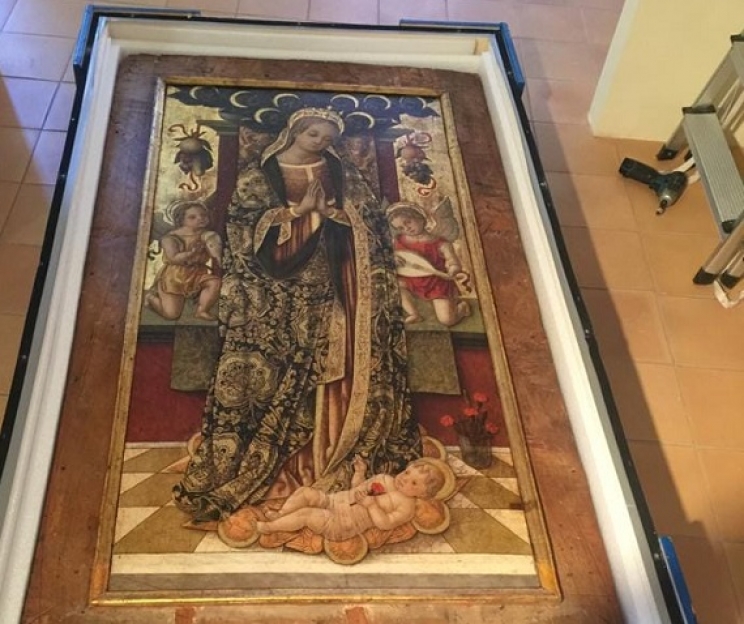 Dopo essere stato esposta, riscuotendo grande successo di pubblico, nelle mostre ad Ascoli piceno e a Roma, al Pio Sodalizio dei Piceni, la tavola di Vittore Crivelli rappresentante la Madonna con Bambino torna a Sarnano, dove potrà essere ammirata alla Pinacoteca Comunale.