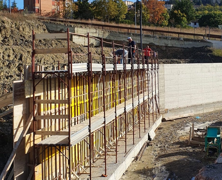 In particolare viene realizzato il completamento dell’ingresso sud dell’istituto che si aggiunge agli altri accessi già in uso con il contenimento dei terrazzamenti attraverso muri di sostegno e terre armate. Sono previsti anche il compimento della strada perimetrale alla scuola e i parcheggi e l’accesso all’Aula magna - auditorium, attraverso una scala e una rampa in cemento armato.