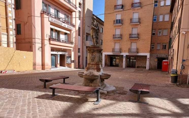 Nuovo assaggio di normalità all'interno del centro storico di Camerino. L'amministrazione comunale ha provveduto a riposizionare alcune panchine in piazza Garibaldi per consentire una sosta più lunga a coloro che dopo la riapertura del corso Vittorio Emanuele II, sempre più numerosi si vedono passeggiare nel cuore della città.