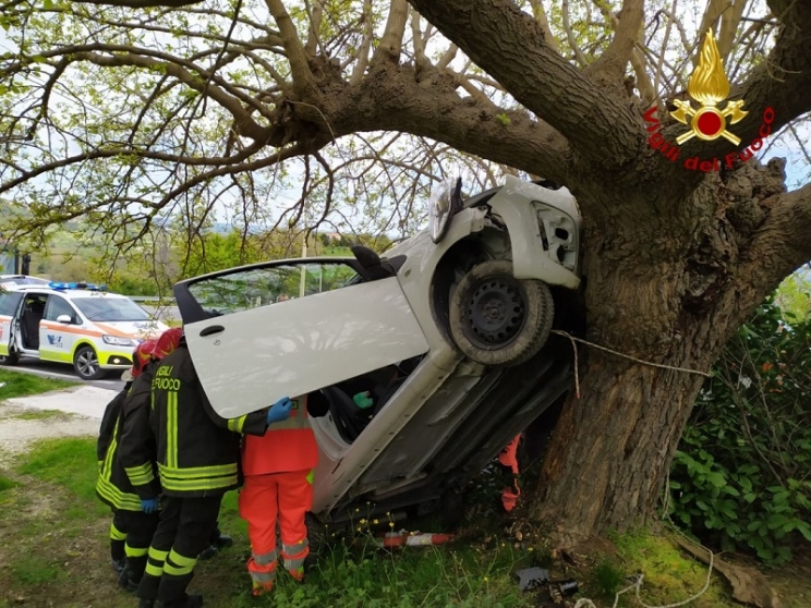 Pauroso incidente stradale quello che si è verificato a Cupramontana dove un uomo, per cause in corso di accertamento, ha perso il controllo dell'auto su cui viaggiava insieme ad un passeggero andando a schiantarsi contro un albero. Sul posto i sanitari del 118 e i vigili del fuoco di Jesi, che hanno provveduto ad estrarre i due occupanti la vettura dalle lamiere. Entrambi rimasti feriti nello scontro, per il più grave dei due si è reso necessario il trasporto in eliambulanza all'ospedale regionale di Torrette, mentre il ferito più lieve è stato portato al pronto soccorso dell'ospedale "Urbani" di Jesi. Successivamente i pompieri hanno provveduto alla messa in sicurezza del luogo dell'incidente, mentre i carabinieri della locale stazione hanno provveduto ai rilievi del caso.