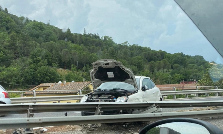 Tamponamento sulla SS77 a Tolentino, auto contro il guard rail