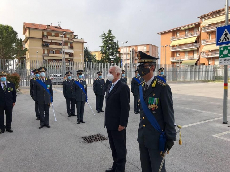 Il Colonnello Ferdinando Falco, Comandante Provinciale, ha dapprima accompagnato il Prefetto di Macerata Flavio Ferdani davanti alla lapide commemorativa dei fatti d’arma risalenti alla 2^ Guerra Mondiale, che hanno visto protagonista l’allievo finanziere Livio Cicalè, a cui è intitolata la caserma maceratese, deponendovi una corona d’alloro con l’esecuzione del silenzio d’ordinanza.