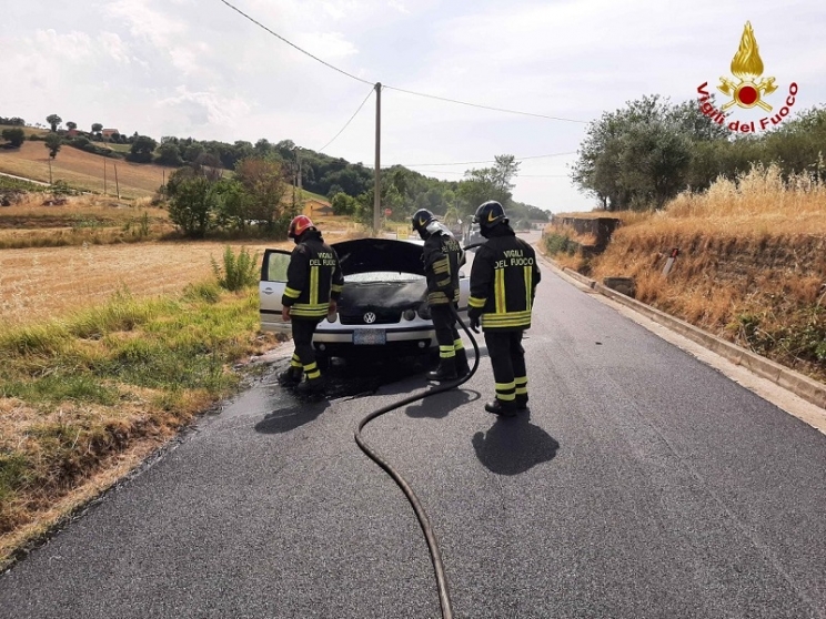 Vigili del fuoco al lavoro a Tolentino, in contrada Santa Lucia, per una vettura alimentata a metano che improvvisamente ha preso fuoco. Il conducente dell'auto, vedendo le fiamme sprigionarsi dal vano motore, ha allertato i pompieri che giunti sul posto hanno provveduto a spegnere il principio di incendio e a mettere l'auto in sicurezza. Fortunamente nessuna conseguenza per l'autista della vettura.