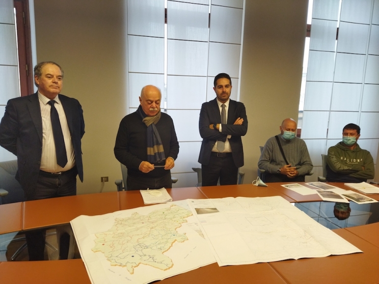 Martedì, 09 Novembre 2021 17:58 | Letto 688 volte Clicca per ascolare il testo Sisma: due milioni e mezzo di euro per la provinciale Penna San Giovanni-M.S. Martino Due milioni e mezzo di euro per i lavori di ripristino dai danni del sisma della provinciale 113, tra Penna San Giovanni e Monte San Martino. Il presidente della Provincia Antonio Pettinari, insieme al dirigente dell’ufficio tecnico Giuseppe Mundo, al progettista Carlo Casucci, al sindaco di Penna San Giovanni, Stefano Burocchi, e al collega di Monte San Martino, Matteo Pompei, ha presentato questo corposo intervento che riguarda un’arteria importante dell’entroterra. Cinque siti differenti di interventi, ha spiegato il progettista Casucci, tra risanamento di frane, realizzazione di palificate a valle e cassonetti per ripristinare le altezze del piano viario, dove fa rifatta la massicciata perché il terreno è sceso. In un caso serve anche un drenaggio profondo a causa delle infiltrazioni di acqua. Le risorse derivano dal quinto stralcio del programma di ricostruzione dell’ANAS, Soggetto Attuatore. «Questi ultimi sono stati anni impossibili per la Provincia - afferma Pettinari -: prima sono state cancellate le risorse per le strade ex statali, stiamo parlando di circa 12-13 milioni di euro all’anno; poi è arrivata la riforma Delrio che ha proseguito questa sottrazione di risorse; infine si è abbattuto il sisma. In mezzo a questa situazione complessa, ci siamo molto concentrati su viabilità, senza cui non ci può essere rilancio, soprattutto nelle zone periferiche, e sulle scuole che dobbiamo difendere a tutti costi non permettendo accorpamenti o peggio chiusure. Le strade sono importantissime perché quella provinciale è la rete principale, che collega i borghi e anche le piccole frazioni. Quindi abbiamo cercato di programmare il più possibile a lungo raggio e redigere progetti per essere sempre pronti ad intercettare finanziamenti: oggi abbiamo un piano delle opere pubbliche che guarda a 6 anni e questo ci permette di intervenire in modo puntuale».