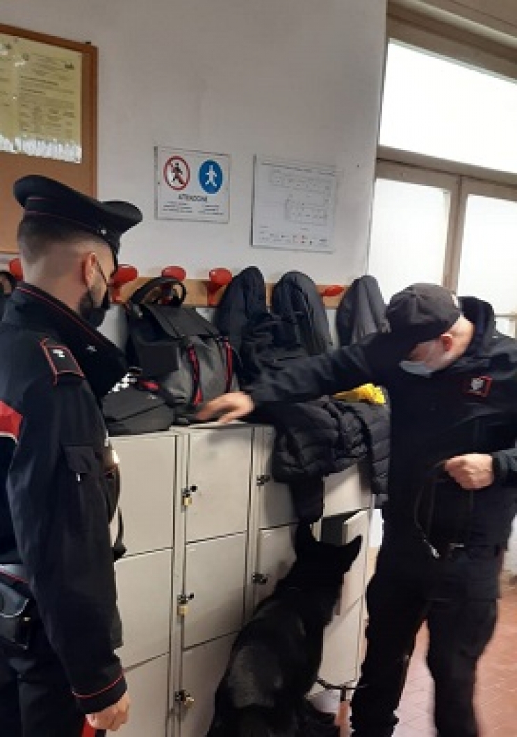 Controlli dei carabinieri delle stazioni di Macerata e Corridonia, con l’ausilio del Nucleo Cinofilo di Pesaro, nelle sedi dell’Ipsia “F. Corridoni”.