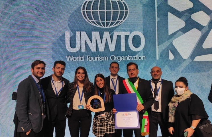 Venerdì, 03 Dicembre 2021 14:48 | Letto 901 volte Clicca per ascolare il testo San Ginesio tra i migliori villaggi turistici scelti dall'Organizzazione Mondiale del Turismo Ora è finalmente ufficiale: San Ginesio è stato insignito del riconoscimento di “Best Tourism Village 2021 ”, unico a rappresentare l’Italia, da parte dall’Organizzazione Mondiale del Turismo delle Nazioni Unite (UNWTO).Il sindaco di San Ginesio, Giuliano Ciabocco, accompagnato dal suo vice, Daris Belli, ha partecipato alla 24^ Assemblea generale UNWTO a Madrid dove alla presenza di oltre 500 delegati provenienti da tutti i paesi del mondo ha assistito alla cerimonia ufficiale che ha annunciato i migliori villaggi turistici 2021 nella prima edizione delliniziativa (pilota). “Ringrazio il Ministero del Turismo per aver supportato San Ginesio a rappresentare l’Italia nel mondo – ha dichiarato il sindaco Ciabocco –, un’occasione davvero unica e di straordinaria importanza che ci consentirà di far parte di una rete privilegiata per il rilancio e la valorizzazione del turismo nei nostri territori. Oggi, anche grazie al forte impulso dato dalla Regione Marche e dal Governatore Francesco Acquaroli, riusciamo finalmente a credere nei Borghi quali luoghi ideali e strategici per l’intero sistema turistico regionale e nazionale. Dedico questo riconoscimento alla comunità ginesina affinché sia un incoraggiamento a non smettere mai di credere nel luogo che si ama.”