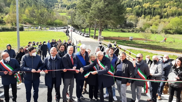 Al taglio del nastro sono intervenuti molti dei sindaci del territorio, il presidente della Provincia Sandro Parcaroli e gli assessori regionali alla Ricostruzione, Guido Castelli, e alla Protezione Civile, Stefano Aguzzi. Soddisfazione da parte di tutte le istituzioni per «un’opera che simboleggia l’attenzione della Regione verso questi territori - afferma Castelli -. La ricostruzione è un procedimento lungo e complesso. Questi lavori sembrano marginali rispetto alla ricostruzione privata della abitazioni, ma in realtà rappresentano tasselli fondamentali per mantenere attive e sane le zone montane. In un’area come questa, fortemente colpita dal sisma, è necessario che le opere pubbliche come le infrastrutture vengano potenziate. Solo in questo modo è pensabile che la tendenza allo spopolamento dell’entroterra possa essere contrastata».