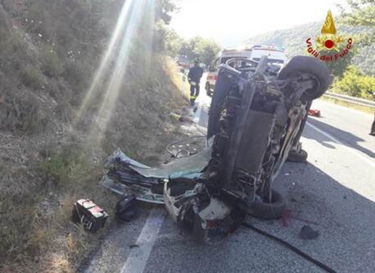 Terribile scontro tra auto e camion questa mattina poco dopo le 7 a Genga, lungo la strada provinciale 22 in località Osteria di Colleponi.