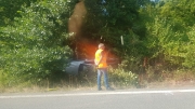 Scoppia uno pneumatico, l'auto tampona un tir e finisce contro il guardrail