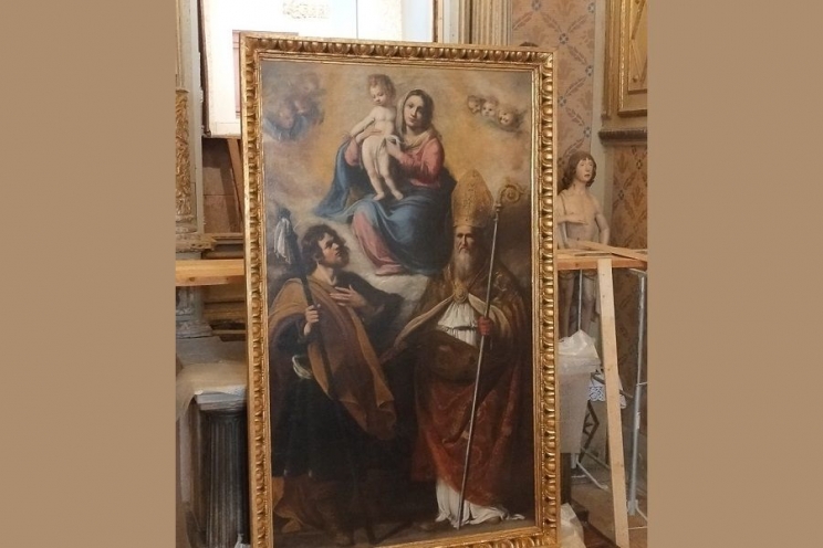 Dopo la rivelazione, nel giorno del suo rientro nella chiesa di San Rocco da quella di Osnago, in provincia di Como, dove nel 1815 era finita a seguito delle requisizioni napoleoniche che la portarono a Brera nel 1811, la tela raffigurante la Madonna con il Bambino e i santi Rocco e Severino, attribuita per tantissimo tempo a Cristoforo Roncalli, detto il Pomarancio, trova definitivamente la sua giusta collocazione con la pubblicazione, sul Bollettino dell’Arte del Ministero della Cultura, di un ricco studio a cura di Gianni Papi, grande conoscitore ed esperto della pittura del Seicento, dal titolo: “La vera paternità della pala ritornata a San Severino dalla pinacoteca di Brera: nuove riflessioni su Baccio Ciarpi”.