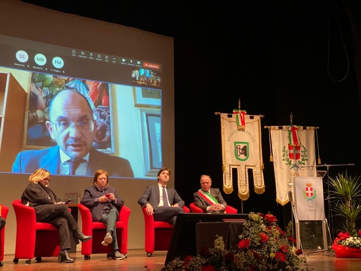 Insieme a loro sul palco il sindaco di Matelica Massimo Baldini, il presidente della Regione Marche Francesco Acquaroli, l’assessore regionale all’Istruzione Chiara Biondi e in video collegamento il commissario straordinario alla ricostruzione post sisma on. Guido Castelli. In platea presenti più di 30 sindaci marchigiani, il presidente della Provincia di Macerata Sandro Parcaroli, il consigliere regionale Renzo Marinelli, il prefetto di Macerata Flavio Ferdani, il questore di Macerata Vincenzo Trombadore, il direttore dell’ufficio scolastico regionale Ugo Filisetti, i consiglieri provinciali con delega alle scuole di Ascoli Piceno e Pesaro Urbino e l’intera amministrazione comunale matelicese.