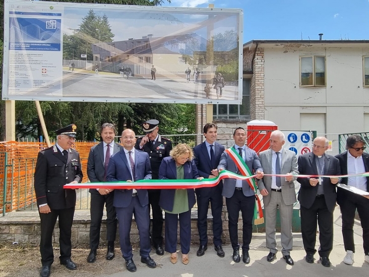 Venerdì, 28 Luglio 2023 15:41 | Letto 1476 volte Clicca per ascolare il testo Al via il cantiere della ricostruzione della nuova caserma di Pieve Torina Nuova sede per l’Arma dei Carabinieri, Comando Stazione dei Carabinieri e della Forestale di Pieve Torina. Il cantiere per l’avvio degli interventi di riqualificazione della caserma, fortemente danneggiata dal sisma del 2016, è stato inaugurato nel corso di una cerimonia a cui hanno partecipato il Commissario straordinario per la ricostruzione, Guido Castelli, il Sottosegretario di Stato Ministero dell’Economia e delle Finanze, Lucia Albano, il Direttore della Struttura per la Progettazione dell’Agenzia del Demanio, Filippo Salucci, il Presidente della Regione Marche, Francesco Acquaroli, il Sindaco di Pieve Torina, Alessandro Gentilucci, il Prefetto Provincia di Macerata, Flavio Ferdani, l’arcivescovo di Camerino-San Severino Marche, Francesco Massara, il Comandante Legione Marche Carabinieri, Salvatore Cagnazzo. L’intervento, per un valore complessivo di 4,3 milioni di euro, è stato finanziato interamente dal Commissario Straordinario Ricostruzione Sisma 2016, che con un’ordinanza speciale, nel corso del 2021, ha assegnato all’Agenzia del Demanio il ruolo di soggetto attuatore. I lavori di riqualificazione della struttura, prevedono la demolizione dei manufatti esistenti e la ricostruzione di un unico fabbricato che si svilupperà su due piani, da destinare a spazi operativi e alloggi di servizio, e un ulteriore piano seminterrato da adibire ad autorimessa. Attraverso l’accorpamento logistico del Comando Stazione dei Carabinieri e della Forestale, la nuova caserma offrirà ai cittadini un servizio pubblico più accessibile e integrato.“L’inaugurazione del cantiere odierno è un segnale che va nella duplice direzione di assicurare la presenza dello Stato, con i suoi presidi strategici, nelle zone colpite dal sisma e ricostruire secondo criteri innovativi, in linea con gli standard della sostenibilità ambientale – le parole del sottosegretario Lucia Albano - È l’esito del lavoro di una filiera istituzionale che collabora fattivamente ad ogni livello (Comune, Regione, Governo) per riparare il tessuto socioeconomico dei territori colpiti dal sisma e garantire un futuro alle giovani generazioni”“La giornata di oggi dimostra che lo Stato cè e che qui, nel cratere, vuole continuare ad esserci – così il commissario Castelli - La posa della prima pietra per la nuova sede dell’Arma dei Carabinieri e della Forestale a Pieve Torina potrà garantire a questa comunità un presidio fondamentale. Il valore di questo intervento, concepito secondo criteri di razionalizzazione degli spazi e capace di assicurare la massima performance energetica, è al contempo concreto e simbolico, dal momento che riguarda la sede di istituzioni espressamente dedicate al servizio e alla tutela dei cittadini”.“Oggi è una giornata importante per la ricostruzione – la chiosa del presidente della regione Marche Francesco Acquaroli - Altre celebrazioni e inaugurazioni si sono succedute recentemente a significare che gli sforzi fatti per far ripartire questi territori iniziano a materializzarsi e a produrre segni tangibili. La pietra che poniamo acquista un valore particolare. La presenza della caserma, in cui operano i Carabinieri e la Forestale, ridà forza alle istituzioni e consolida la presenza dello Stato, garantendo la vicinanza ai cittadini e la sicurezza in questi territori”.