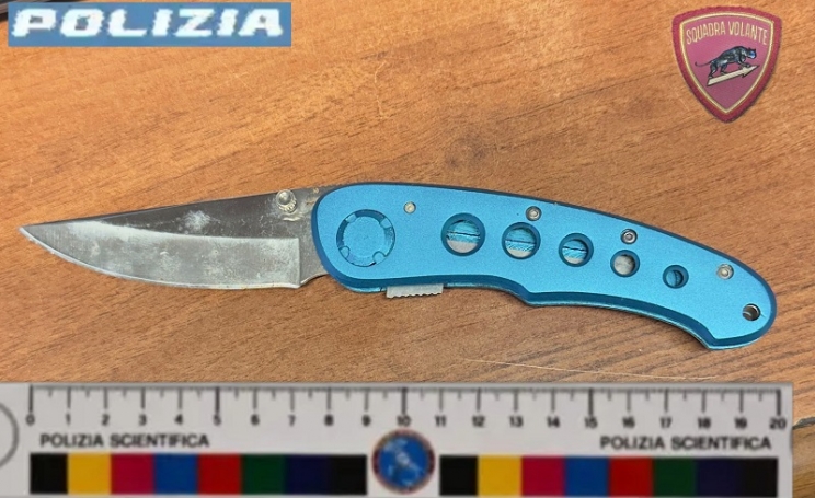 Durante il controllo, l’uomo ha dichiarato di possedere droga. La perquisizione personale ha confermato: addosso aveva una piccola quantità di hashish e un coltello a serramanico lungo 18,5 cm. Privo di documenti, è stato accompagnato in Questura per l’identificazione. È stato denunciato per porto abusivo di oggetti atti ad offendere e segnalato alla Prefettura come assuntore di sostanze stupefacenti.