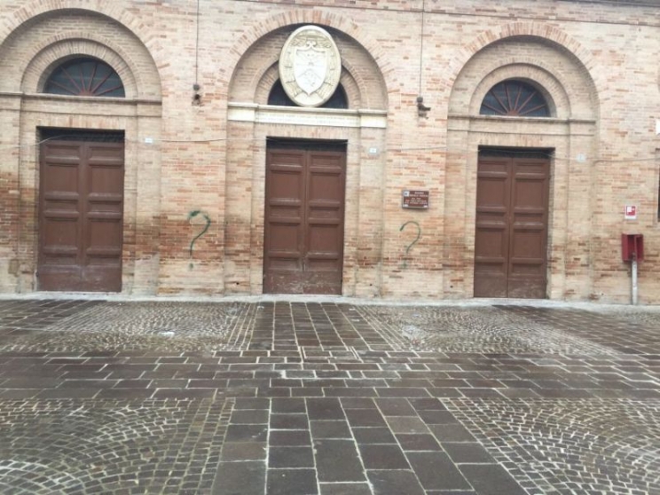 Vandali al Vaccaj, imbrattate le facciate dello storico teatro di Tolentino