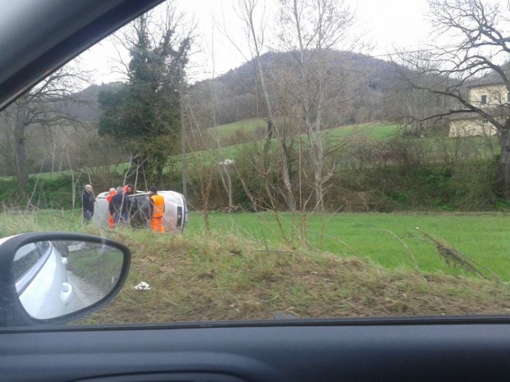 Uno spettacolare incidente stradale, fortunatamente senza particolari conseguenze, si è verificato lungo la strada provinciale Muccese, all'altezza della località San Luca di Camerino. Per cause in corso di accertamento un'auto, condotta da una giovane, è sbandata uscendo di strada e terminando la sua corsa in un campo, dove la vettura è rimasta rovesciata su un fianco. Immediato l'intervento dei soccorsi con i vigili del fuoco che hanno aiutato la giovane, rimasta all'interno dell'abitacolo, ad uscire da un finestrino laterale.