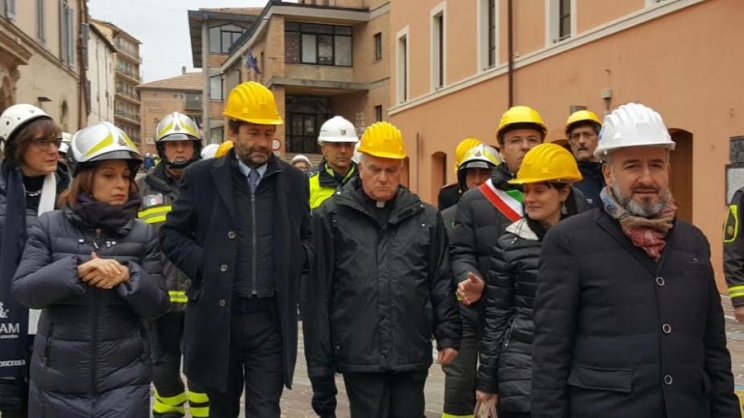 E’ iniziata intorno alle 12 e 15 la visita in “zona rossa” del Ministro dei Beni e delle Attività Culturali e Turismo Dario Franceschini. Accolto dal primo cittadino, dall’arcivescovo Brugnaro e dal prefetto Preziotti , il capo di dicastero ha voluto recarsi nel cuore della città per rendersi conto di persona dei danni prodotti dal terremoto.