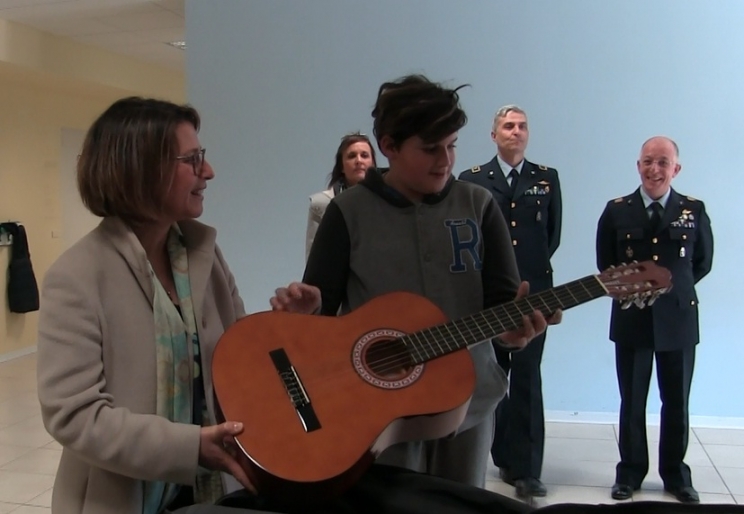 "Abbiamo messo in campo la volontà di stare accanto a voi – ha detto nel suo intervento il tenente colonnello Lombardo, che ha portato anche il saluto del comandante del IV Stormo, il colonnello Marco Lant – per dimostrare che la sofferenza può essere condivisa per affrontarla in modo diverso. A novembre rimasi particolarmente colpito dal vedere i volti della dirigente e degli insegnanti rigati dalle lacrime. Oggi,vedendo invece il sorriso su quegli stessi volti, riscalda il cuore". "Ricordo benissimo quel 19 novembre, giorno in cui padre Stefano e il tenente colonnello Lombardo vennero a Caldarola – le parole della dirigente Fabiola Scagnetti – Insieme andammo a vedere i crolli nella nostra scuola in un momento particolarmente triste e difficile. Loro hanno subito colto il nostro dispiacere, ma anche la voglia che avevamo di ricominciare e, quindi, hanno subito pensato a delle donazioni che saranno finalizzate ad attrezzature sportive, arredi e attività musicali. Questa solidarietà di cui abbiamo costantemente prova rappresenta una grande lezione di condivisione per i nostri ragazzi e un esempio da seguire". Ad accogliere i due avieri del IV Stormo anche il vice sindaco e assessore alla scuola Debora Speziani. "Sono particolarmente soddisfatta per il fatto che la gran parte delle donazioni arrivate siano destinate alla scuola – dichiara il vice sindaco Speziani – Ciò significa che la ricostruzione deve partire dai bambini perchè sono il nostro futuro. A loro ricordo spesso che da questo terremoto debbono trarre una lezione importantissima, quella della solidarietà e dell'aiuto reciproco". Gli alunni della scuola De Magistris hanno, infine, espresso il proprio sentimento di gratitudine attraverso una lettera che è stata letta da Chiara Giovannini.