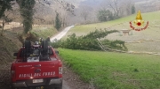 Alberi e rami crollati sulle strade, danni a coperture, tegole pericolanti Sono solo alcuni dei particolari di una nottata all’insegna delle forti raffiche di vento che hanno spirato sulle Marche fino a 80 km orari, dall’entroterra alla costa. Numerosi gli interventi delle squadre dei Vigili del fuoco coordinate dal Comando provinciale di Macerata per la rimozione e messa in sicurezza delle sedi stradali e per arginare le situazioni di pericolo. Non si registrano feriti. Piante e rami crollati hanno richiesto più interventi per tutta la notte anche da parte dei Vigili del fuoco del distaccamento di Camerino: in località Ponte della Cerasa, una pianta è caduta su un’ auto Fiat Doblò che si trovava a transitare sulla strada, proprio in quel momento. Danni all'auto ma nessuna conseguenza per il conducente. Interventi per una quercia secolare abbattutasi sulla strada per Rocca d’Aiello; problemi anche a Castelraimondo e Seppio. Le forti raffiche hanno creato problemi alle linee internet e fibra, con interruzioni del servizio che interesserebbero una vasta zona, per ripristinare il quale i tecnici Tim sono già al lavoro. Sempre a Camerino la furia del vento ha provocato non pochi danni nella zona del Seminario arcivescovile. Ad essere particolarmente interessata dai fenomeni l'area adibita e utilizzata come sgambatoio per gli amici a quattro zampe con piante sradicate, bidoni rovesciati, porte divelte nelle strutture adiacenti. Notevoli i disagi anche per i commercianti ospitati all'interno del maxi tendone del City Park in via Madonna delle Carceri. Danni anche alle strutture di Unicam dove le forti raffiche hanno scoperchiato il tetto dell'edificio che ospita la facoltà di Biologia.