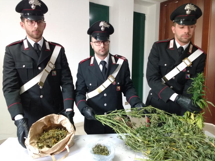 Nel corso della perquisizione sino anche state rinvenute 5 piante di cannabis, ciascuna con infiorescenza ed aventi un’altezza media di 1 metro, per un peso complessivo di kg. 1,2 – ovviamente le  piantine venivano coltivate senza alcuna autorizzazione.Valore economico al dettaglio circa 5000-6000 euro.