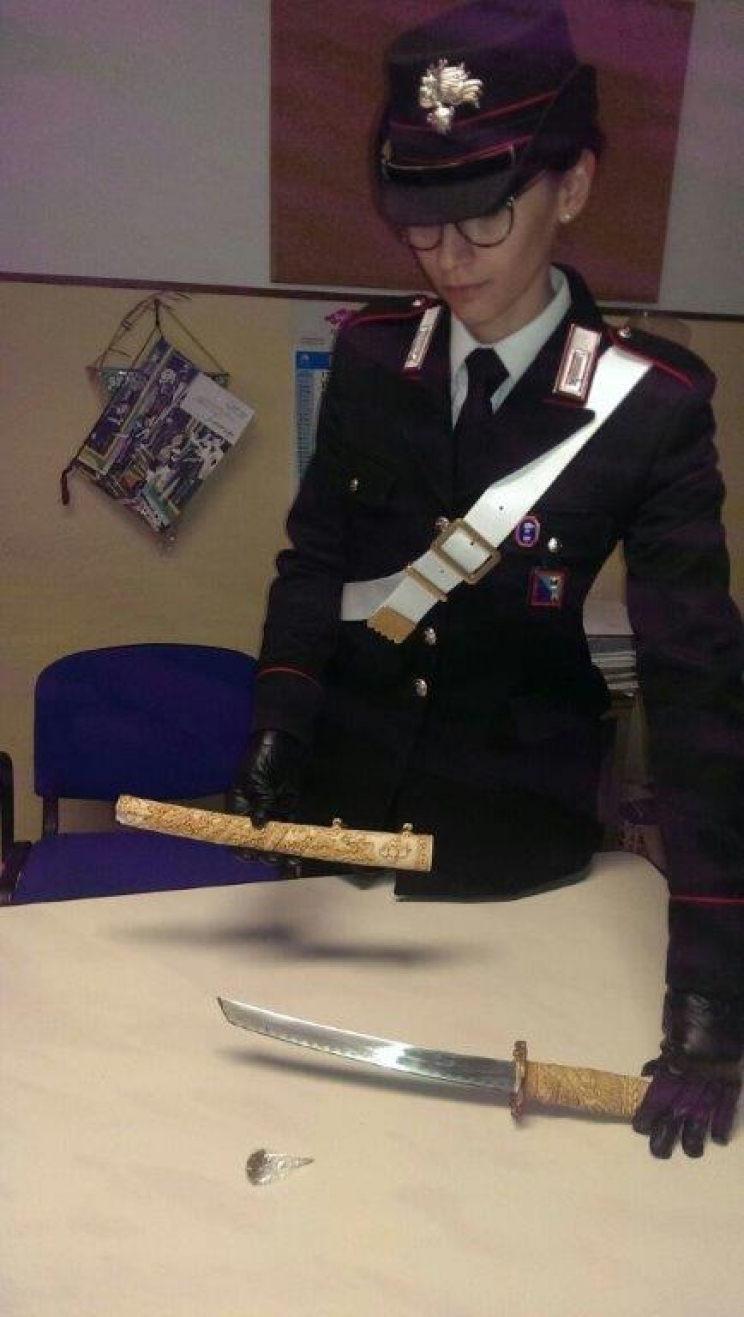 Nella serata di ieri, durante un servizio di controlo del territorio, militari della Compagnia OIperativa del 4° battaglione “Veneto” di stanza a Macerata per uno straordinario monitoraggio del territorio, hanno fermato un’autovettura il cui conducente, 20enne, è stato trovato in possesso di una “katana” di 50 cm e 30 di lama mentre il passeggero aveva quasi un grammo di “marijuana”.Tutto il materiale rinvenuto è stato sequestrato.