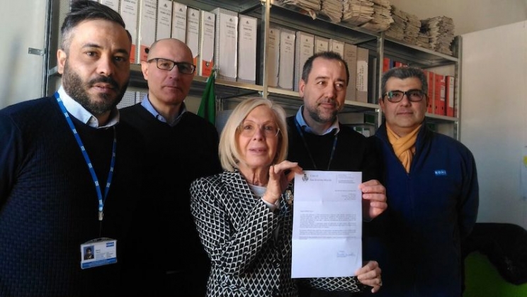 Lunedì, 26 Marzo 2018 13:24 | Letto 1257 volte   Clicca per ascolare il testo Un nuovo ascensore per il "Girasole" Un nuovo ascensore per i ragazzi del Centro diurno “Il Girasole”. E’ il dono che la società Kone, leader internazionale nel settore degli ascensori, delle scale, dei tappeti mobili e delle porte automatiche per edifici, ha deciso di fare alla comunità settempedana gravemente colpita dalle scosse di terremoto dell’ottobre 2016. La donazione, ufficializzata dall’amministratore delegato di Kone Spa, Angelo Bosoni, è stata formalizzata nel corso di una piccola cerimonia ufficiale tenutasi nella sede provvisoria del Municipio da una delegazione della impresa che ha sede a Pero, in provincia di Milano, che è stata ricevuta dall’assessore comunale ai Servizi Sociali, Vanna Bianconi, e dal responsabile dell’ufficio Sisma. L’ascensore, completo di incastellatura metallica, verrà installato presso i locali dell’ex chiostro del santuario del Glorioso dove il Comune di San Severino sta realizzando opere di riqualificazione e riuso anche degli annessi locali del Lazzaretto. Gli spazi, attualmente interessati dai lavori di recupero, verranno messi a disposizione degli utenti del Centro diurno “Il Girasole” costretti, a causa delle scosse dell’ottobre dello scorso anno, a lasciare la sede storica di via Salimbeni.g.g.