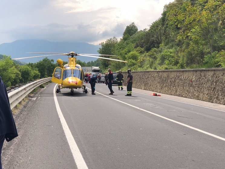Gravissimo incidente stradale lungo la provinciale 361 Septempedana che collega Castelraimondo con San Severino, poco dopo la locanda Salimbeni. La zona già in passato è stata teatro di diversi incidenti, l'ultimo dei quali pochi giorni fa. Per cause ancora in corso di accertamento, un'auto condotta da una donna, con a bordo anche una bambina piccola che era seduta sul seggiolino e che viaggiava in direzione Castelraimondo ha invaso la corsia opposta scontrandosi frontalmente con un camion. Il pesante mezzo dopo l'impatto è finito di traverso sulla sede stradale mentre l'auto si è ribaltata ed è finita contro il muro di contenimento che delimita la carreggiata. I soccorritori hanno richiesto due eliambulanze per il trasporto di mamma e bimba all'ospedale Torrette di Ancona. Ad estrarle dalle lamiere i vigili del fuoco, intervenuti sia da Camerino che da Macerata. Entrambe erano coscienti: la piccola piangeva ed è stata cullata a lungo da una volontaria della CRI, e alla madre, una volta estratta, è stato subito comunicato che la figlia stava bene. Per i soccorsi, anche il 118, la Croce Rossa di Camerino e la Polizia Municipale di San Severino.