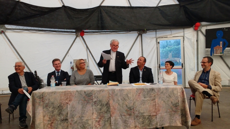 Attraversare disagio, smarrimento e difficoltà di una comunità profondamente ferita e sofferente. Sul piano del dialogo a più voci e dell’ascolto, lo ha fatto l’incontro “Ricostruire persone e comunità”, sesto appuntamento della rassegna “ Filosofia della vita quotidiana” tenutosi a Camerino presso la Geo Tenda del City Park .Arrivato alla sua quarta edizione, il progetto è promosso dall’associazione culturale di volontariato Agorà col sostegno di Fondazione Carima e Wega –Filotest. Al partecipato confronto, coordinato dal responsabile dell’ass. Agorà Silvio Minnetti, hanno portato il saluto il sindaco Gianluca Pasqui e il Prorettore di Unicam Andrea Spaterna. Numerosi gli spunti di riflessione suggeriti dagli interventi dei relatori che si sono succeduti al tavolo, a partire dall’arcivescovo Francesco Giovanni Brugnaro al quale sono seguiti i contributi della Prof.ssa Carla Canullo docente di Filosofia all’UniMc, di Donatella Pazzelli del Consiglio di Ammnistrazione della Fondazione Carima e dello psichiatra Angelo Meloni del Dipartimento di Salute Mentale dell’Asur Av3. Centrali nell'intera conversazione che ha aiutato a riflettere su uno stato drammatico di disgregazione sociale, gli argomenti a sostegno della necessità che la comunità riesca a riappropriarsi di un’armonia interiore, riscoprendo il senso della vita.