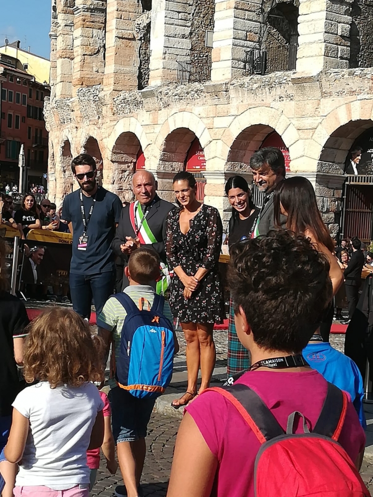 “Un’emozione indescrivibile “. È il primo commento del sindaco Mario Baroni reduce dall’Arena di Verona da dove, insieme a 14 mila persone, ha assistito alla serata evento “ La notte di Andrea Bocelli”, inno al bel canto, alla grande musica operistica e alla solidarietà. Una ribalta internazionale per il piccolo paese terremotato di Muccia nei confronti del quale, grazie alla quinta edizione della maratona filantropica “Celebrity Fight Night Italy” promossa dalla famiglia Bocelli, è stata lanciata la campagna di raccolta fondi attraverso sms che supporterà la costruzione della nuova scuola primaria e dell’infanzia. Numerosi i bambini arrivati a Verona da Muccia insieme ai loro genitori, per vivere la grande emozione della serata- evento e ringraziare per il bellissimo segnale di speranza che dà certezza a tutta la comunità. Con il sindaco Baroni, presente quasi tutta l’amministrazione comunale e una nutrita rappresentanza di cittadini per dare testimonianza dell’orgoglio e della soddisfazione del paese di fronte a un messaggio solidale così forte. “Oltre alle bellissime sensazioni di un meraviglioso spettacolo– dice il sindaco- c’è l’emozione grande racchiusa nella possibilità di avere una scuola nuova, arredata di tutto e, elemento principale, assolutamente sicura. Ci onora sapere che, grazie alla maratona solidale, la Fondazione Bocelli vorrà donare a Muccia la nuova struttura, realizzandola in 150 giorni. L’augurio è che si possa riuscire a vederla in piedi per l’inizio del prossimo anno scolastico; chissà, magari anche prima. E’ una notizia che non può che riempire di gioia l’intera comunità, segno che quando c’è la volontà, anche i sogni possono realizzarzi velocemente. Dietro a tutto questo c’è la generosità del Maestro e della sua famiglia che non ci stancheremo mai di ringraziare”.