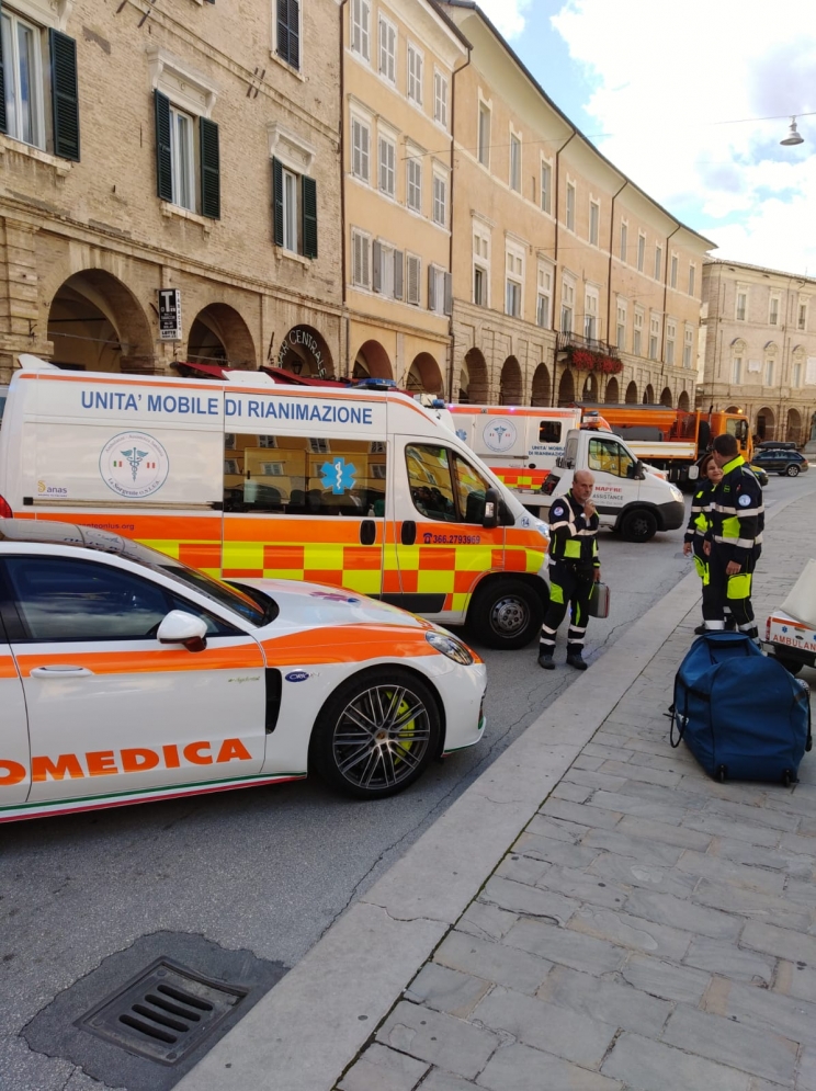 Per il secondo anno consecutivo la carovana on the road della “Mille e 118 Miglia del Soccorso”, manifestazione ideata dal medico bolognese Cristian Manuel Perez per diffondere la cultura del primo soccorso stradale e del volontariato in ambulanza, ha fatto tappa in piazza Del Popolo. L’evento, patrocinato dal Comune di San Severino, ha coinvolto anche le scolaresche cittadine oltre a tanti settempedani attratti dai mezzi solitamente utilizzati per salvare vite umane. Tra questi anche un bolide da 462 cavalli, una Porsche Panamera 4 E-Hybrid capace di raggiungere i 100 chilometri orari con partenza da ferma in meno di 5 secondi. In esposizione anche mezzi tecnici della società Anas, partner dell’iniziativa.