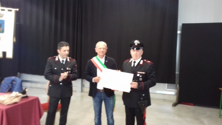 Una festa a sorpresa per il congedo dell'appuntato Dante Babore. Così il sindaco Luca Giuseppetti e il personale del comune di Caldarola hanno voluto salutare, nell'Auditorium "Annalena Tonelli", presente anche il comandante della locale stazione Patrizio Tosti, il militare che termina il suo servizio nell'Arma dei Carabinieri. Un servizio iniziato proprio a Caldarola nel 1982, come ha tenuto a ricordare un emozionatissimo Babore, che ha ringraziato il sindaco, i suoi superiori, la popolazione caldarolese per averlo accolto come un fratello e, non ultima, la sua famiglia. "Una persona davvero importante per la nostra comunità, specialmente nel difficile periodo dell'emergenza terremoto - ha sottolineato il sindaco Giuseppetti - La sua professionalità, la competenza, ma soprattutto la sua umanità hanno davvero fatto la differenza. Sempre vicino ai cittadini, ha anche collaborato con l'amministrazione venendo spesso in comune per chiedere informazioni riguardo alle problematiche esistenti. Un esempio di persona innamorata del suo lavoro che ha svolto sempre con estrema professionalità. Un carabiniere che i cittadini di Caldarola ricorderanno sempre".