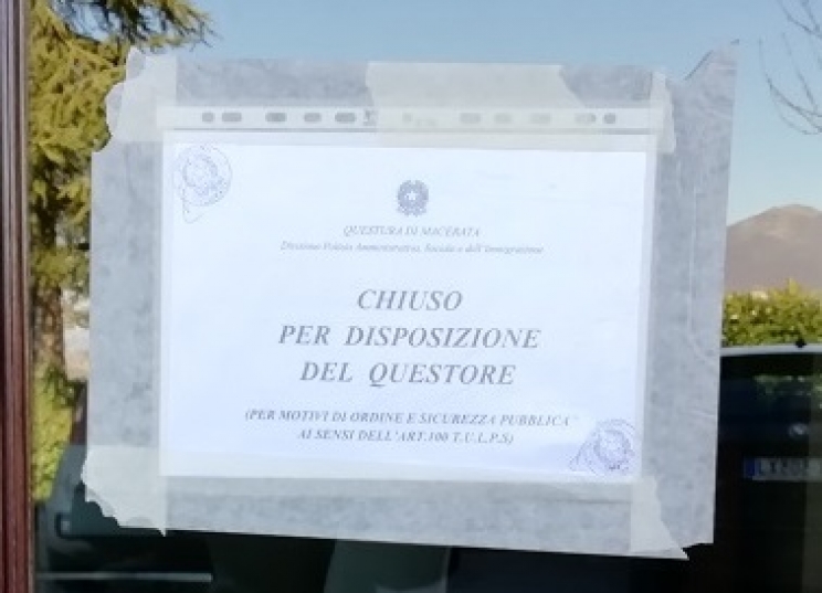 Chiusura per 15 giorni del Bar Tabacchi " Da Stefano"a Camerino, a motivo della presenza tra i clienti abituali, di personaggi conosciuti alle forze dell'ordine. E' l'esercizio di via Madonna delle Carceri il cui titolare, ha ricevuto ieri la notifica di chiusura da parte di Polizia e Carabinieri. La misura è stata adottata su disposizione del questore di Macerata dietro proposta della Compagnia Carabinieri di Camerino; numerosi interventi effettuati da Carabinieri e Polizia nell'arco di due mesi, hanno permesso di accertare la costante presenza di soggetti noti alle forze dell’ordine per reati che vanno dallo spaccio di sostanze stupefacenti, alla rapina, ricettazione e lesioni. Segnalati anche violenti litigi per futili motivi che avrebbero creato un clima di tensione e preoccupazione negli stessi avventori del bar. Elementi che hanno condotto il questore di Macerata Antonio Pignataro a disporne la chiusura per motivi di ordine e sicurezza pubblica ai sensi dell'art 100 del Testo Unico delle Leggi di pubblica sicurezza.