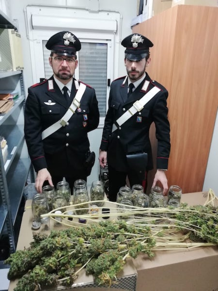 Nella sua camera da letto sono stati ritrovati tre piante di marijuana dell’altezza di circa un metro e di due chili di peso, e numerosi vasi in vetro al cui interno erano contenuti 600 grammi della stessa sostanza essiccata e circa 250 semi di canapa indiana.