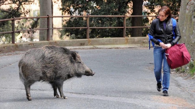 Inseguito da un cinghiale in centro città