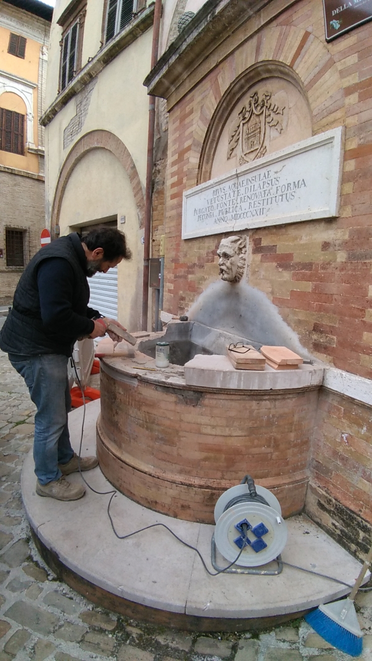 Dopo l’autorizzazione della Soprintendenza, rilasciata appena una settimana fa, il Comune diSan Severino ha avviato i lavori di recupero e restauro della fonte della Misericordia, manufatto realizzato nel 1453 quando venne derivata l’acqua della fonte dell’Isola edanneggiato da un incidente d’auto nel febbraio 2018.
