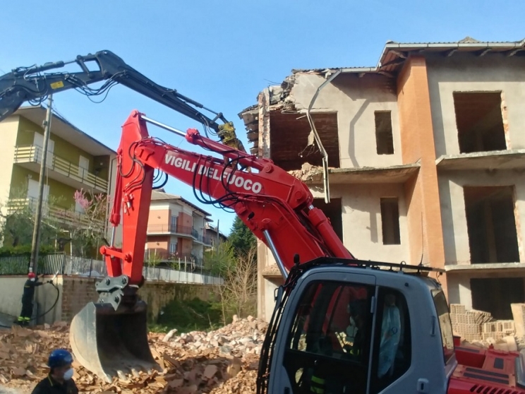 A partire dal 1 Aprile sono iniziate le operazioni di demolizione, ad opera del Gruppo Operativo Speciale Marche dei Vigili del Fuoco, dell’edificio sito in via San Rocco che da decenni sovrastava gli edifici confinanti, nel comune di Sarnano. Mai finito di costruire, da anni l’edificio rappresentava un pericolo per le vie pubbliche sottostanti a causa delle continue cadute di parti di cornicione e tegole. Tale situazione nel tempo aveva più volte richiesto interventi di installazione di presidi di sicurezza. In seguito al sisma del 2016 l’edificio aveva subito pesanti danni al tetto con parziali crolli e conseguenti infiltrazioni d’acqua che avevano peggiorato la situazione di per se già compromessa. Per l’intervento di demolizione sono intervenuti i componenti dei comandi dei Vigili del Fuoco di Macerata, Ascoli Piceno, Ancona e Pesaro, costituititi da sei operatori e un funzionario. Il recupero dell’amianto presente sarà effettuato a cura della squadra NBCR dei Vigili del Fuoco e successivamente smaltito dalle ditte specializzate coordinate dall’unità emergenziale della Cosmari Srl che si occuperà anche del recupero delle macerie. Alto circa 15 metri, con una superficie coperta di 365 metri quadrati, l’edificio sarà demolito mediante l’uso di due mezzi meccanici attrezzati di pinza idraulica seguendo una tecnica così da orientarne la caduta: il manufatto si trova a pochi metri da altri edifici che per ragioni di sicurezza sono stati evacuati.