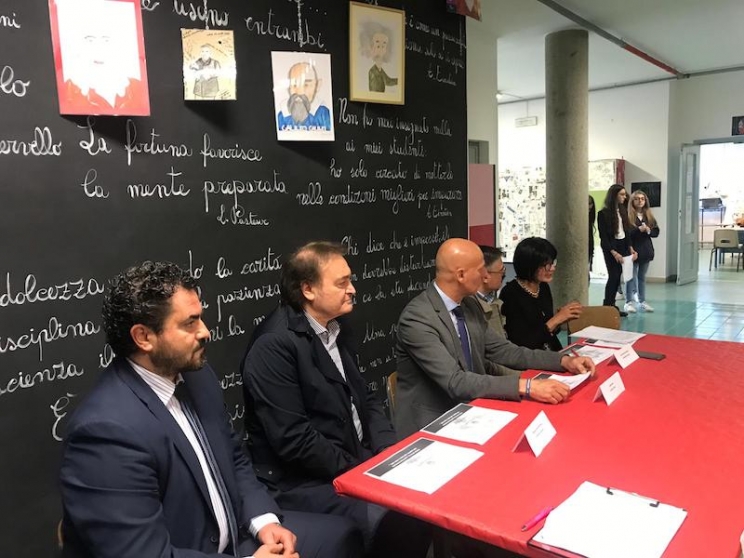 Ad accogliere gli invitati al taglio il Dirigente Scolastico Prof.ssa Giuseppina Carosi, il Referente del progetto Prof. Roberto Granato Raggiinsieme alle collaboratrici Prof.sse Grazia Caselli e Roberta Schifone. Presenti il senatore M5S Giorgio Fede e i consiglieri regionali Pierpaolo Fabbri e Peppino Giorgini che hanno contribuito al finanziamento del progetto