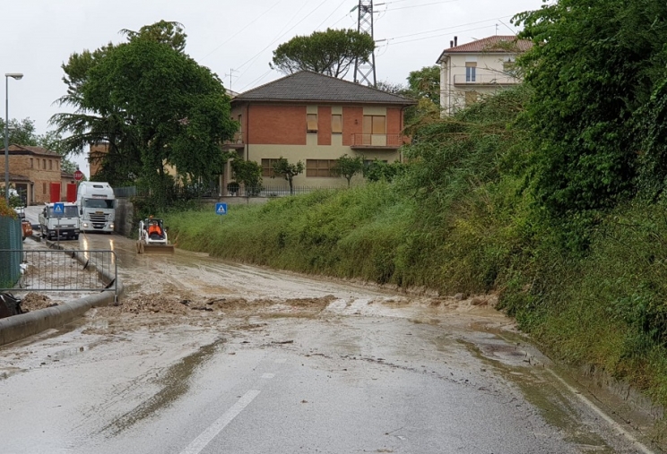 Giovedì, 30 Maggio 2019 09:22 | Letto 1204 volte Clicca per ascolare il testo Tolentino, si lavora per riaprire le strade allagate Si lavora già da stamattina per riaprire il tratto di strada in contrada Piani Bianchi a Tolentino che, a seguito delle piogge di ieri pomeriggio, è stata interessata da una abbondante frana.Il manto stradale è completamente riccoperto di fango e terra, arrivati fino alla pista ciclabile dallaltro lato della carreggiata.È per questo che, anche mattina, un breve tratto di strada vicino al Ponte del Diavolo è stato chiuso per permettere ai mezzi di rimuovere il fango e i detriti.Purtroppo però la pioggia continua a cadere incessantemente e non è escluso che i disagi proseguano anche nella giornata odierna.GS