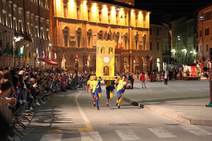 Nei giorni scorsi ha preso il via, oltre al Palio dei bambini, anche il Palio dei grandi, con il Torneo del Coccio, questa volta svolto in piazza del Popolo, in primo piano. Dopo le gare di tiro con la balestra e con l’arco con abbinamento a sorte dei tiratori ai Castelli o Rioni, in testa si trova il quartiere di Taccoli con 13 punti complessivi, inseguito da Di Contro ad una lunghezza. Sono 11 i punti per Colleluce, 10 quelli di Villa di Cesolo e 6 per rione Settempeda. La serata ha vissuto momenti palpitanti grazie ai balestrieri David, Remì, Forestiero, Golìa e Marchegià, abbinati rispettivamente a: Colleluce, Cesolo, Di Contro, Taccoli e Settempeda e classificati nell’ordine. Nel settore del tiro con l’arco l’hanno spuntata Sandro ed Emanuele per Taccoli, davanti a Pamela ed Elio per Di Contro; Terzi Giovanni e Beatrice che hanno difeso i colori giallorossi di Settempeda, quarti Flavia ed Ettore alla testa di Villa di Cesolo e quinti Luca ed Enrico, abbinati a Colleluce. Oltre al torneo del Coccio, la serata è stata resa elettrizzante dalle eliminatorie del tiro alla fune che hanno visto i giovani di rione di Contro, pur indomiti, terminare in ultima piazza. Gli accoppiamenti delle semifinali dopo il girone all’italiana sono i seguenti: gli imbattuti verdi di Colleluce se la vedranno con Settempeda, quarti, mentre Villa di Cesolo, secondi dopo le quattro manches, sfideranno i rosanero di Taccoli, terzi. I giochi proseguono stasera dalle 21.00 in piazza del Popolo, con le competizioni dei grandi dei sacchi, dei trampoli e della brocca, in attesa del gran finale del Palio 2019 di grandi e piccoli di sabato.