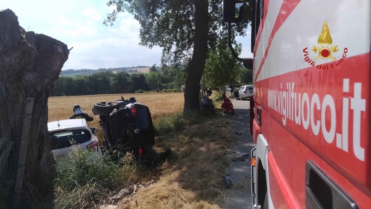Sono finite in ospedale le due persone che erano a bordo dell'auto che stamane, alle 10, si è ribaltata lungo la strada comunale Rotacupa, a Macerata. Si tratta di una Golf nera che si è scontrata con altre due auto, una Skoda e una Hiundai. Sul posto il 118 che ha portato i due occupanti all'ospedale di Macerata e i vigili del fuoco che hanno messo in sicurezza la vettura.