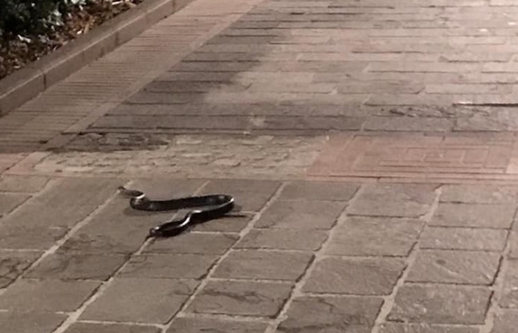 E' stato avvistato nella serata di ieri strisciare lungo viale Cesare Battisti, a Tolentino, all'altezza di villa Gabrielli. Un curioso episodio che è stato immortalato da una passante che si è imbattuta nel rettile, una specie innocua pare, che si aggirava indisturbato sul marciapiede.