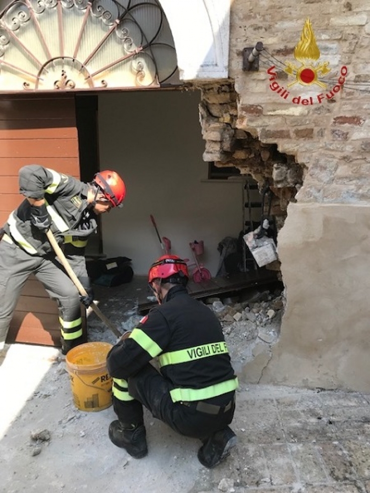 Singolare incidente stradale avvenuto in pieno centro storico a Morrovalle dove il conducente di un'auto, per cause in corso di accertamento, ha perso il controllo della propria vettura che ha terminato la sua corsa contro l'ingresso di una abitazione abbattendo una porzione di muro ed il portale in marmo, così bloccando l'accesso all'appartamento. Pronto l'intervento dei vigili del fuoco che hanno rimosso le parti in muratura che bloccavano l'accesso, effettuando anche il puntellamento provvisorio del muro e del portale. Fortunatamente il conducente della vettura non ha riportato nessuna conseguenza ne sono state coinvolte nel sinistro altre persone.