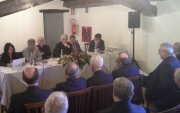 A rappresentare la diocesi di Camerino – San Severino Marche Mario Staffolani, che, dopo aver portato ai presenti il saluto dell'arcivescovo Francesco Giovanni Brugnaro, ha tenuto a ringraziare i giovani “coristi” per l'iniziativa complimentandosi con la loro esecuzione. “Chi canta e canta bene prega due volte – ha esordito citando S. Agostino – Oggi ho avuto la gioia di poter rientrare in una chiesa visto che nel nostro territorio quasi tutte le chiese sono state distrutte o sono inagibili. Un territorio che è stato colpito duramente dal terremoto – ha proseguito illustrando la situazione dell'alto maceratese – con molti paesi divenuti una grande zona rossa. Per questo vi ringraziamo per la vostra iniziativa di solidarietà, per la quale vorrei ringraziare anche Francesco Zanotti, un fratello più che un amico, che nei giorni immediatamente successivi al terremoto non ha mai mancato di farmi sentire la sua amicizia e la sua vicinanza. Durante il periodo della sua presidenza alla Fisc (Federazione italiana settimanali cattolici ndr) il suo più grande insegnamento è stato quello di utilizzare, metaforicamente parlando, ago e filo per ricucire i rapporti che talvolta finivano per sfilacciarsi”. “Attraverso il nostro contatto quotidiano – ha fatto eco Francesco Zanotti – ho captato, per quanto fosse possibile, il dramma che si stava vivendo a causa del sisma. Così mi sono fatto tramite perchè questo concerto potesse contribuire ad aiutare una comunità così duramente messa alla prova”.